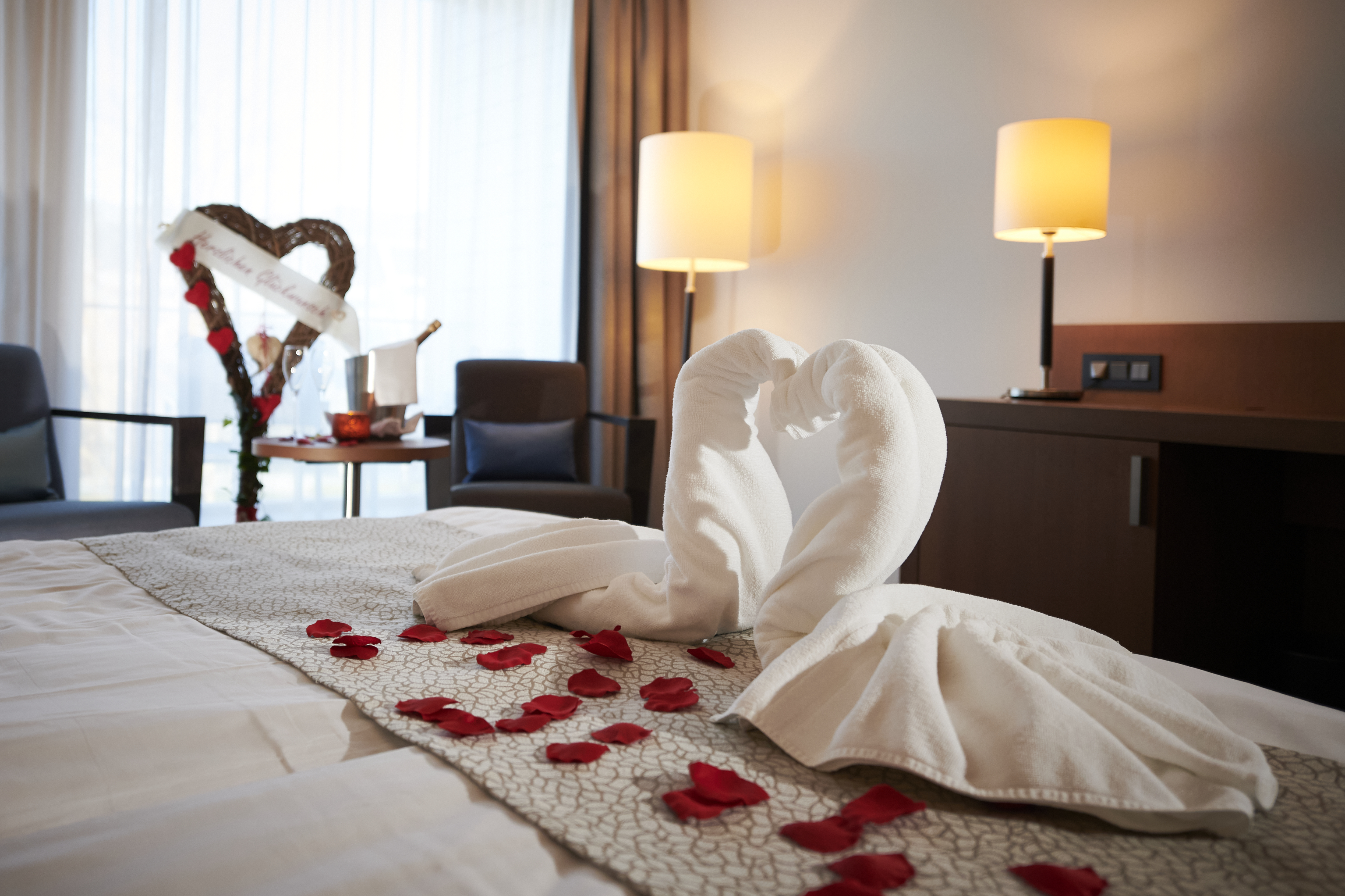 Romantische Zimmerdekoration inkl. alkoholfreier Schaumwein 7.5 dl I 24 Stunden im Voraus bestellen
