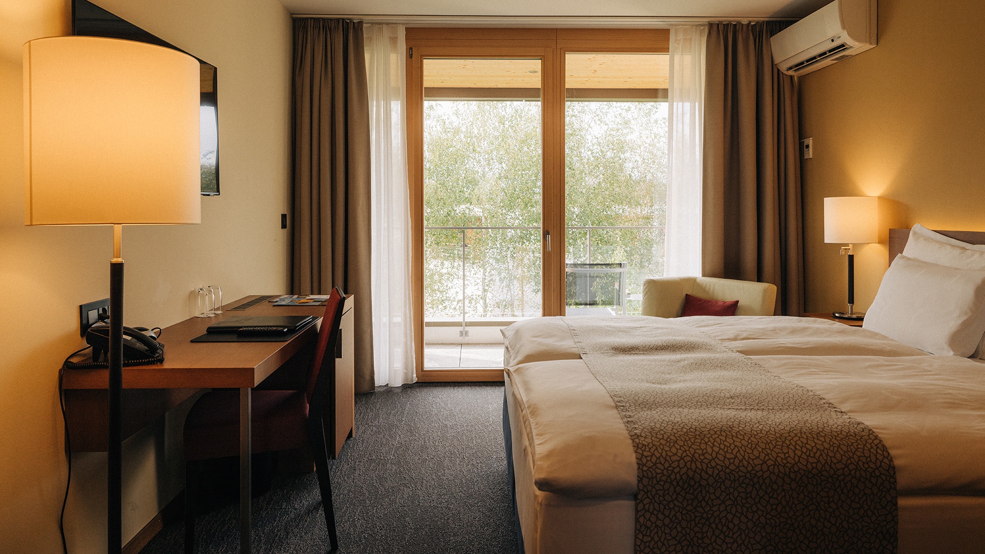 Die Zimmer im Sporthaus bieten ein grosszügiges Boxspringbett (180x200cm), geräumiges & modernes Badezimmer (Dusche/WC) und einen schönen Balkon.